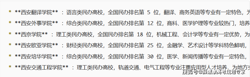 报考:2019年,双一流 / 985 高校,因为财经类专业全体降温,该校以师范和工科专业为从,西安文理学院本年有学前教育的公费师范生,理科以会计学、财政办理、数学取使用数学、英语、化学分数稍高。校名圈套:“学院” 不必然弱,报考:延安大学2018年升为一本招生,宝鸡文理学院就成为陕西二本院校实力最强的学校了,这是陕西的几所985或211工程院校!